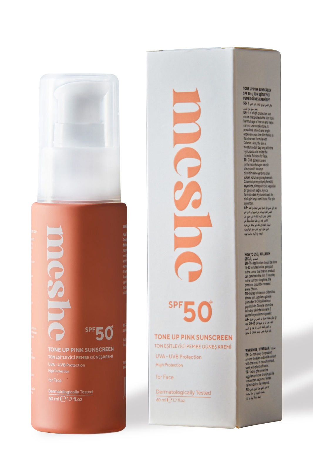 SPF +50 Tone Up Pink Sunscreen Ton Eşitleyici Yüz Güneş Kremi Meshe Pembe Güneş Kremi, güneşin UVA ve UVB ışınlarına karşı cildi korur ve yaşlanma etkilerini önlemeye yardımcı olur. Pembe güneş kremi, güneşin neden olduğu cilt lekelerini azaltmaya ve cildi nemlendirmeye katkı sağlar. Aynı zamanda cildin daha canlı ve parlak görünmesine yardımcı olurken solgun ve cansız bir görünümü ortadan kaldırmayı hedefler. Ayrıca pembe güneş kremi makyaj bazı olarak da kullanılabilir ve makyajın daha uzun süre dayanmasını sağlar.
